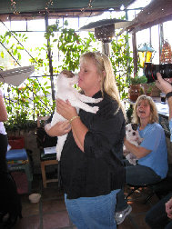 Cindy Curtin, our top fundraiser at over $4,000 & counting, gets some puppy love with an adoptable pup at our Paws in the Park Kickoff Luncheon.